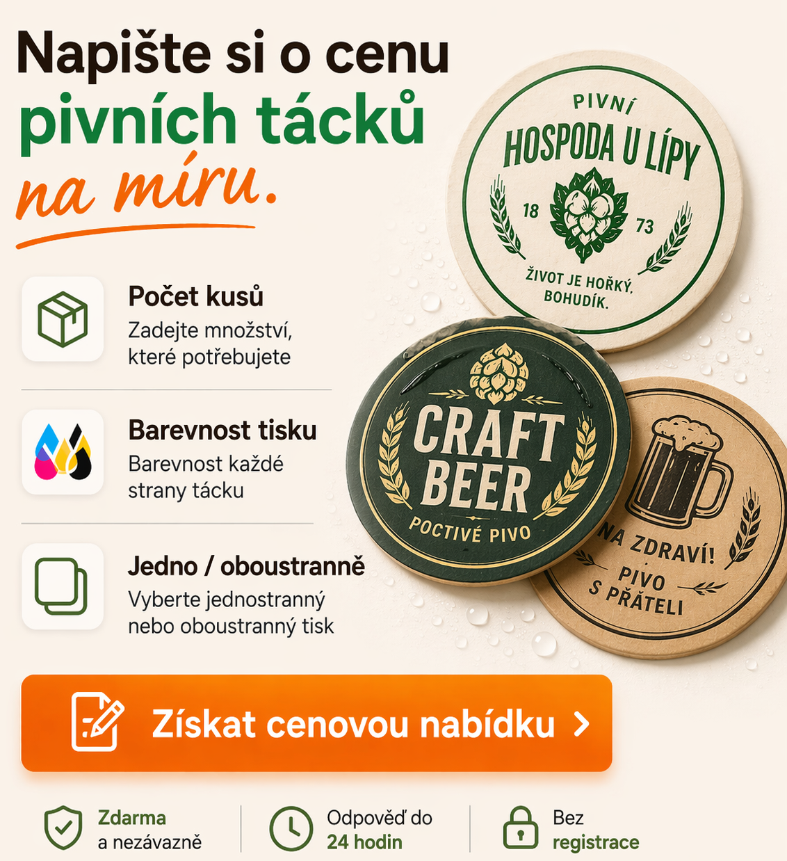 Pokud chcete něco jedinečného, vytvoříme vám ♥ pivní tácky zcela na zakázku – s vlastním designem, logem nebo grafikou.